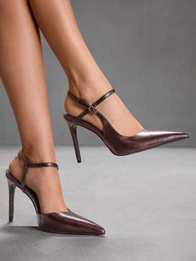 CUCCOO BIZCHIC Women Shoes Spring And Summer New Comfortable Breathable Skinny Pointed Toe Thin Heel Slingback 7cm Women's High Heel Shoes Commuting Light Sophisticated Glossy Patent Leather Solid Color Workplace Daily Dating Party Spring Shoes
