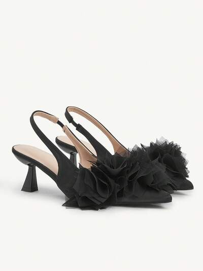 CUCCOO SZL Women's Pointed Toe Asymmetric Heel High Heels, Embroidered Mesh Design, Romantic Elegant Stylish Fashion Mesh Pumps, Formal Dress Shoes For Wedding, Party, Valentine's Day Spring Shoes