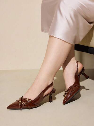 CUCCOO CURVES Women Shoes Wide Fit Fashion Pointed Stiletto Brown Multi-Strip Strap Buckle Slingback Women's Shoes Simple Classic Daily Comfort Fattened High Heel Women's Shoes Plus Size-69%