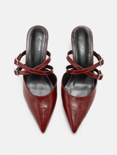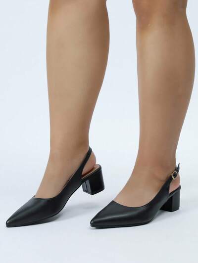 CUCCOO CURVES Plus Size High Heel Shoes, Pointed Toe With Buckle Decor, Slip-On Back Strap-13%