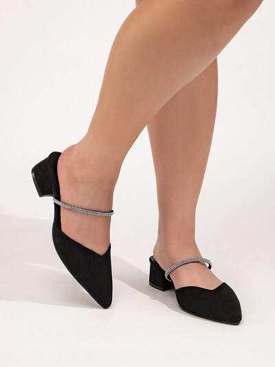 CUCCOO CURVES Women's Fashion Black Chain Strap Back Comfortable Low Heel Pointed Toe Flats, Suitable For Commuting, Dates, Gatherings, Parties & Various Occasions-60%