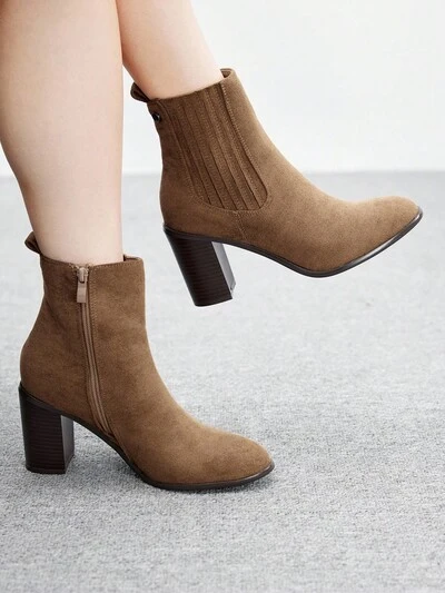 CUCCOO BIZCHIC Plain Zipper Closure Casual High Heel Ankle Boots, Versatile For Daily Wear, Autumn/Winter For Christmas
