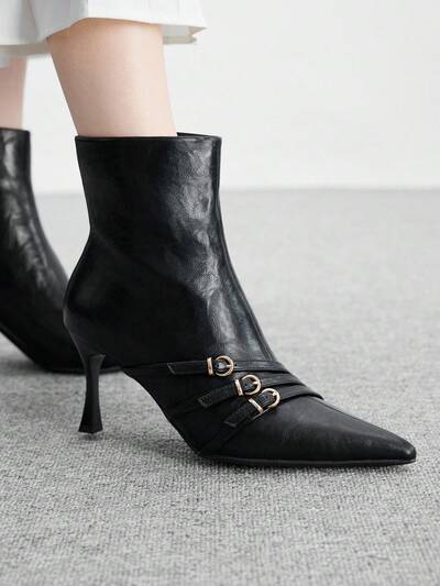 CUCCOO SZL Fashion Women Shoes Zipper Decor Pointed Toe Stilettos Sexy Black Dress Boots With Side Zipper, Ankle Boots And Knee-High Boots For Street Style, Christmas Bad Girl Night Out New Year Holiday