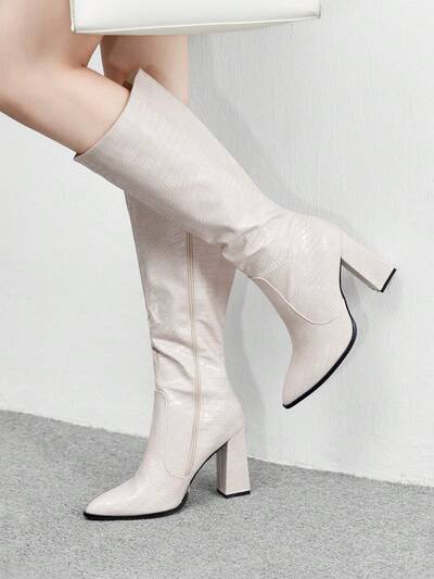 CUCCOO BIZCHIC High-Quality Snake Skin Pattern Tall Boots, Pointed Toe Chunky Heel Elegant Women's Boots, Fashion Versatile New Design Long Boots, Showcasing Feminine Charm And Elegant