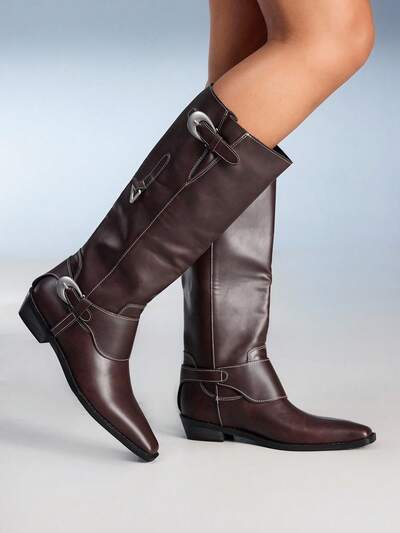 CUCCOO BIZCHIC Women's Casual Vacation Western Cowgirl Style Suede Buckle Belt Knee-High Boots