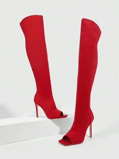 CUCCOO SZL Women's Elegant Square Toe Peep Toe High Heel Over The Knee Boots, Solid Color, Fashion For Spring Shoes Spring Break Easter For Christmas