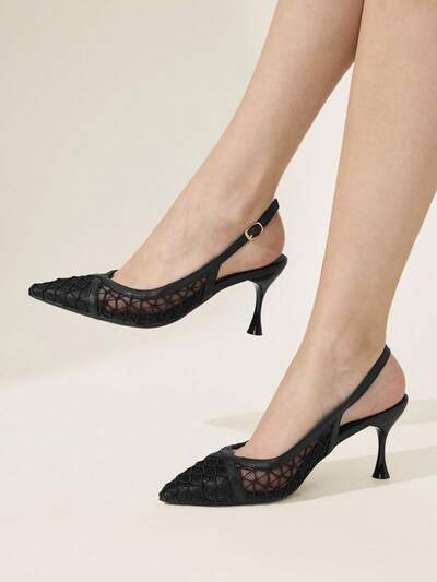 CUCCOO HITCHD Women's High-Heeled Shoes, Elegant Pointed Mule Mop In Summer, Breathable Lace Fabric, Oversized Square Crystal Diamond Decoration, Fine High-Heeled Women's Shoes, Banquet Date Eye-Catching Single Product