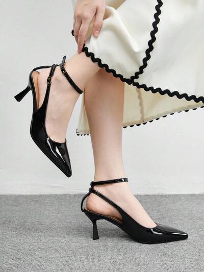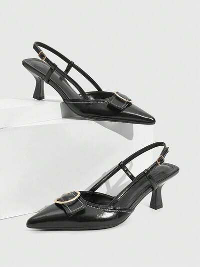 CUCCOO SZL 25 Spring/Summer New Design Pointed Toe Buckle Mid-Heel Romantic Elegant Chic Minimalist Sexy Black High Heel Sandals, Open Toe Dress Shoes For Date, Afternoon Tea, Party, Valentine's Day, Graceful Outfit Valentine's Day