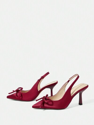 CUCCOO CHICEST Pointed Toe, Low Heel, Bow Knot Design Women High Heels, Fashionable, Comfortable, Suitable For Everyday, Festival And Party Occasions For Christmas And New Year Holiday Vibe Fall And Winter