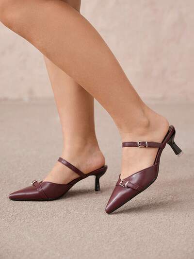 CUCCOO CURVES Pointed Apricot Stiletto High Heels For Women, Elegant And Individual For Daily Commuting, Apricot Pointed Rhinestone Buckle Stiletto High Heels With Wide Back Heels, Rhinestone Decorated Buckle With Back Strap Stiletto High Heels Valentine's Day-60%