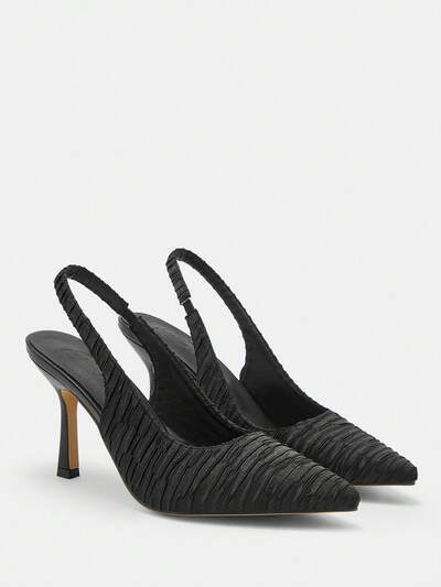 CUCCOO CURVES Plus Size Wide-Width Pointed Toe High Heel Pumps, Elegant Solid Black Strap Backstrap Sandals, Suitable For All Seasons Spring Shoes Spring Break Easter-60%