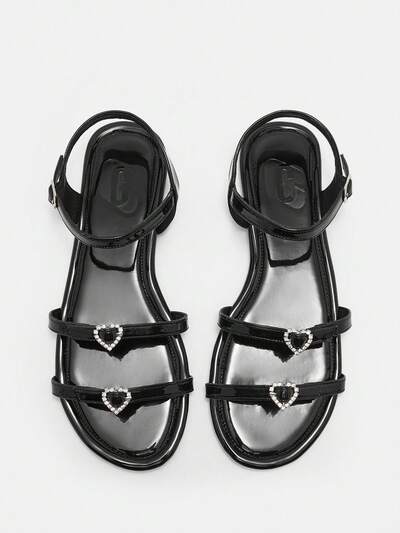CUCCOO CURVES Wide Fit Women Wide Width Flat Sandals, Round Toe Patent Leather Multiple Straps Heart Ornament Daily Beach Holiday Low Heel Shoes-74%