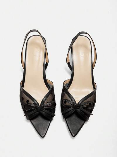 CUCCOO CURVES Plus Size Wide-Width High-Heel Pointed Toe Slingback Pumps With Back Strap, Black-55%