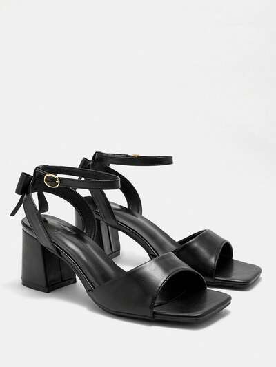 CUCCOO CURVES Plus Size Women Black Ankle Strap Sandals, Fashion Classic Wide Fit Comfortable Peep Toe High Heels For Christmas-20%