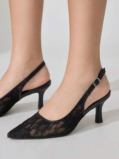 CUCCOO CHICEST Women's Fashion Black Lace Point Toe Stiletto High Heel Pumps, Suitable For Commuting, Dating, Party, Shopping And Holiday For Christmas Elegant Shoes Wedding Shoes Summer Shoes Bride Shoes-27%