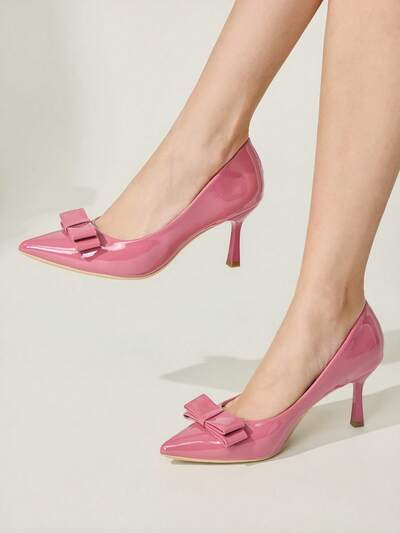 CUCCOO CHICEST 4-Season New Bowknot Pointed Toe Slim Heel Mid-Heel Elegant Commuter Style Simple Comfortable Green Patent Leather Women's High Heel Pumps, Suitable For St. Patrick's Day, Christmas, Date, Afternoon Tea, Workplace Chic Elegant Shoes Wedding Shoes Summer Shoes Bride Shoes-64%