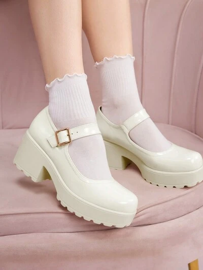 CUCCOO DOLLMOD Women Chunky Heeled Wedge Shoes, Elegant Artificial Leather Mary Jane Shoes For Summer Graduation Heels Prom Heels Vacation Shoes Summer Back To School Shoes College Student Shoes Spring Shoes Spring Break Easter For Christmas Spring Shoes-25%