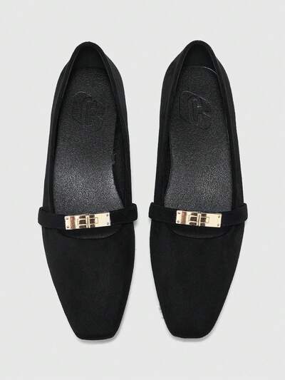 CUCCOO BIZCHIC Women's Square Toe Flat Black Suede Metal Buckle Mary Jane Flats, Lightweight Comfortable Slip-On Suitable For Dresses For Christmas Spring Shoes