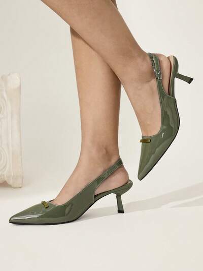 CUCCOO BIZCHIC Women's Pointed Toe Low Vamp Metal Multi-Strap Buckle Stiletto Heel Slingback Sandals, Elegant And Fashionable High Heels For Christmas Spring Shoes