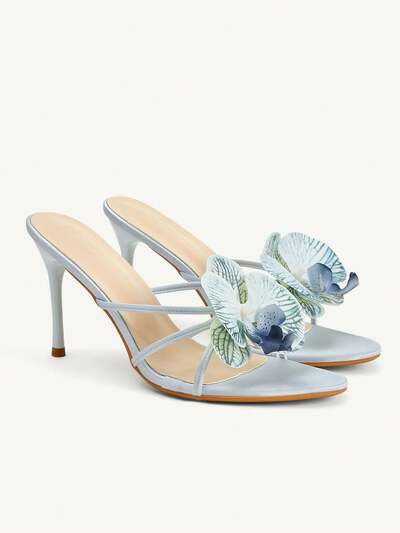 CUCCOO CHICEST Summer New Light Blue Flower Thin Heel Pointed Fashion Women's High Heel Sandals Summer Shoes