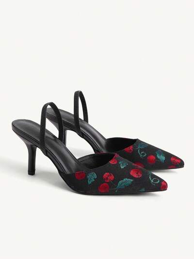 CUCCOO CHICEST Women's Cherry Pattern Pointed Toe Fashion High Heels, Versatile For Daily Wear Valentine's Day Elegant Shoes