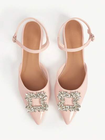 CUCCOO CHICEST Women Shoes Spring And Summer New French Low Vamp Pointed Toe Low Heel Flat Sole Shoes, Temperament Rhinestone Square Buckle Sexy Fashion Elegant Comfortable Not Tired Feet Fairy Style High Sense Closed Toe Sandals