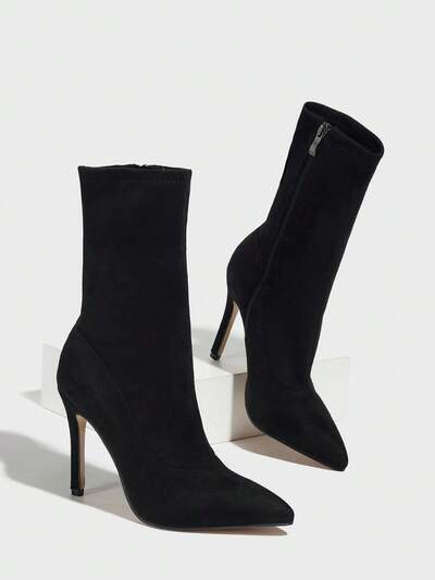 CUCCOO SZL Women's Pointed Toe Elastic Slim Stiletto High Heel Side Zipper Patent Leather Sexy Skinny Shiny Ankle Boots For Christmas Valentine's Day Spring Shoes