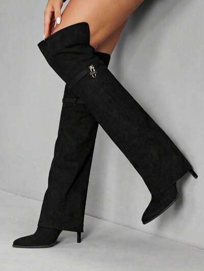 CUCCOO SZL Cuccoo Pointed Toe High Shaft Slim Heel Thigh High Boots For Women, Sexy Rider Boots For Christmas Spring Shoes