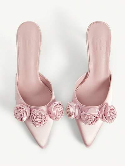 CUCCOO CHICEST Women's Pointed Toe 3D Floral Decor Daily Versatile Fashion Mule High Heels Summer Shoes Wedding Shoes Bride Shoes