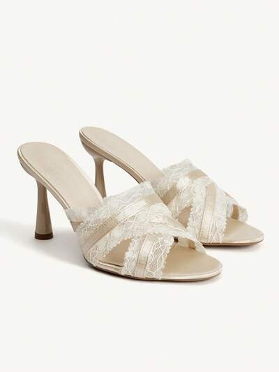 CUCCOO CHICEST Women Shoes Summer Summer Lace Rose Ornament Open-Toed Stiletto 8.5cm Solid Color Women's High Heel Sandals Elegance Daily Dating Party Wedding Shoes Summer Shoes Bride Shoes