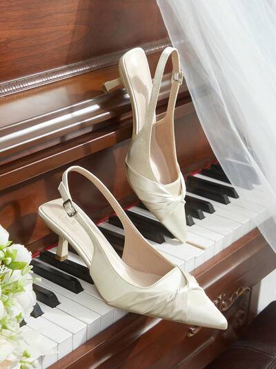 CUCCOO CHICEST Women's 25 Summer/Summer New Pointed Toe Stiletto Heel Mid-Heel Romantic Elegant Charming Minimalist Sexy Champagne Satin Ladies High Heel Dress Shoes, Suitable For Date, Afternoon Tea, Party, Valentine's Day, Elegant Outfit Wedding Shoes Summer Shoes Bride Shoes