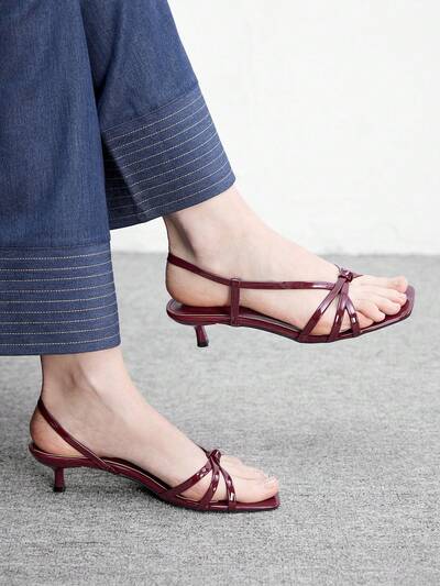 CUCCOO BIZCHIC Women Shoes Spring And Summer New Burgundy Stripe Open-Toed Women's Middle Heel Sandals Simple, Stylish And Comfortable Daily Versatile Commuter Women's Sandals Women's Shoes Summer Shoes
