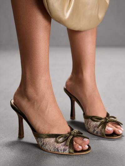 CUCCOO SZL Women's Elegant Commuter Lace Bow Decor Heeled Sandals Valentine's Day Spring Shoes Prom Heels