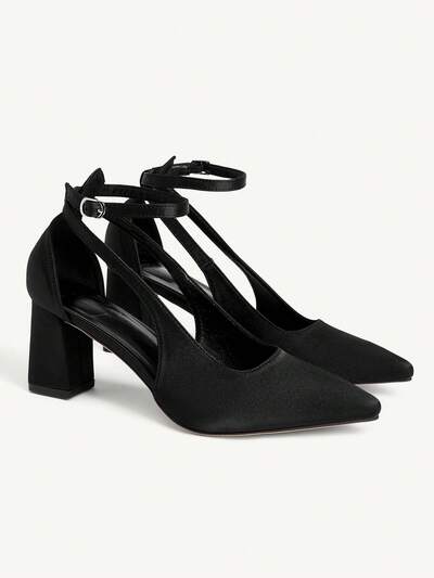 CUCCOO BIZCHIC Women's Pointed Toe Chunky Heel White Strap Backless Fashion Minimalist Comfortable Slingback High Heels, Suitable For Work, Party, And Casual Occasions Valentine's Day Spring Shoes