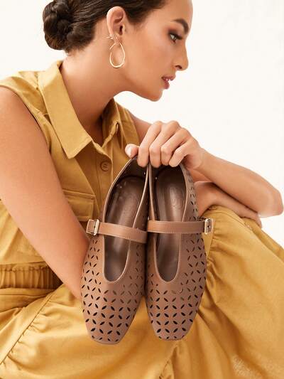 CUCCOO CHICEST Women's Round Toe Comfortable Mary Jane Vintage Simple Laser Pattern Flat Shoes Summer Shoes Summer Break Easter For Christmas Elegant Shoes Wedding Shoes Summer Shoes Bride Shoes