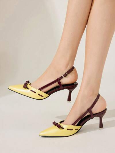 CUCCOO CHICEST Women's High Heel Pumps, Spring/Summer New Design With Bow, Pointed Toe, Mid Heel, Bicolor PU Leather, Elegant For Dates, Romantic And Sweet Open Toe Shoes Summer Shoes Wedding Shoes Bride Shoes