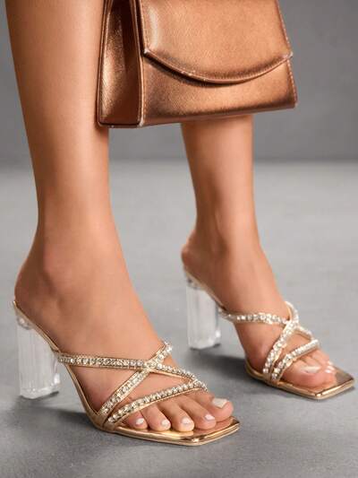 CUCCOO SZL Women's Square Toe Rhinestone Decor Elegant High Heel Sandals Prom Heels Summer Shoes