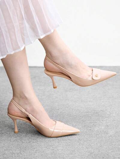 CUCCOO BIZCHIC Women Shoes Four Seasons New Apricot Metal Buckle Pointed Toe Thin High Heel Low Vamp Commuter Elegant Fashion Women's High Heel Shoes Slingback After Slingback Shoes Dew Heel Dinner Party Elegant Office Workers Holiday Wear Women's Shoes