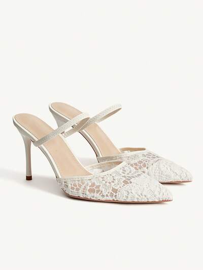 CUCCOO TILAWA Women's Pointed Toe High Heel Shoes, Rhinestone Decor Mesh Fabric, Fashion Comfortable For Daily, Party, Banquet, Slip-On Buckle Strap Backless Pumps