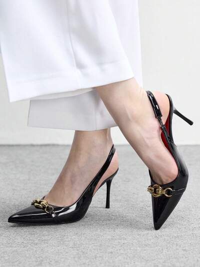 CUCCOO BIZCHIC Women Shoes Spring Summer Metal Buckle Pointed Stitch Heel 9cm Glossy Patent Leather Solid Color Women's High Heel Shoes Commuter Dating Daily Party Spring Shoes