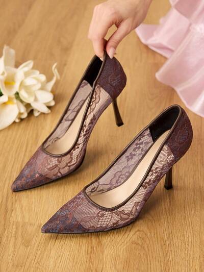 CUCCOO HITCHD Women's Floral Embroidered Lace Pointed Toe Stiletto High Heel Elegant Sweet Romantic Sexy White Mesh Lady's High Heel Dress Shoes, Bridal Shoes, Fashion Party Formal Wear, Suitable For Wedding, Christmas, Thanksgiving, Halloween, Birthday, Valentine's Day Wedding Shoes Summer Shoes Bride Shoes