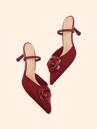 CUCCOO BASICS Women's Pointed Toe Floral Decor Elegant High Heel Mules Spring Shoes