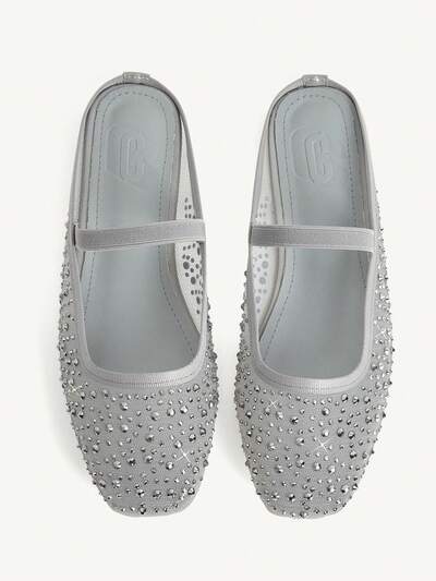 CUCCOO CHICEST Women Shoes Spring Summer Fashion Silver Full Diamond Mesh Elastic Women Flat Mule Shoes Elegant When Comfortable Cute Sweet Women Flat Shoes Half Slippers