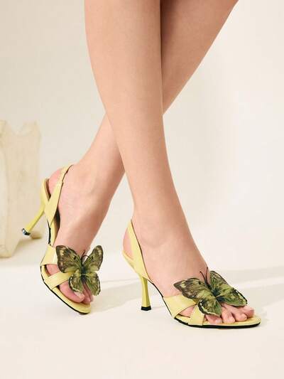 CUCCOO CHICEST Women's Fashion Butterfly Decor Casual High Heel Sandals Wedding Shoes Spring Shoes Bride Shoes