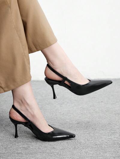 CUCCOO BIZCHIC Women's Pointed Toe Black Patent Leather Metal Buckle Fashionable Sexy Versatile Date Night Wear Backstrap Pointed Toe Stiletto High Heel Sandals Spring Shoes