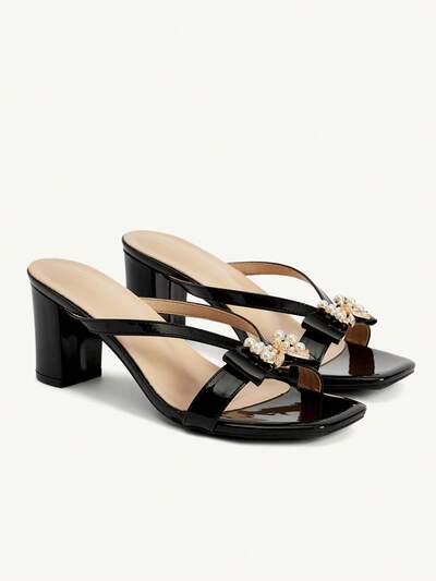 CUCCOO CHICEST Women Shoes Classic Fashion Women's Thick Heel High Heel Sandals Faux Pearl Bow Decorative Elegant Elegant Mule Heels Women's Shoes Wedding Shoes Spring Shoes Bride Shoes