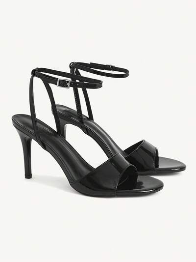 CUCCOO CHICEST Women Shoes Black Satin Satin Bow Heart Buckle Decoration, Ankle Strap Fashionable Elegance Temperament Spring And Summer Wedding Round Toe High Heel Sandals-14%