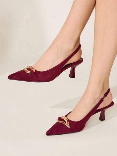 CUCCOO CHICEST 4-Season New Metal Buckle Pointed Toe 6.5cm Stiletto Heel Women's Pumps, Elegant Suede Purple Red Color Commuting & Date High Heel Sandals Elegant Shoes Wedding Shoes