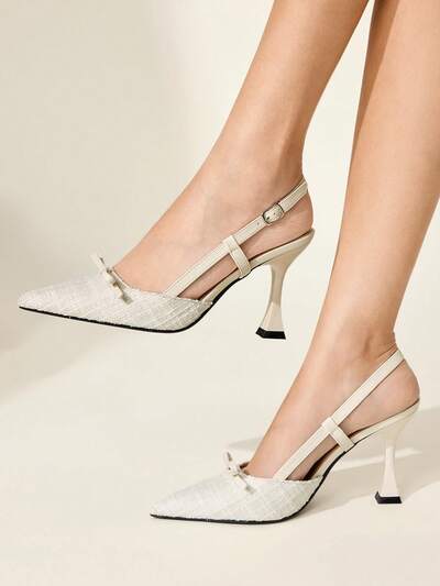 CUCCOO CHICEST Women's Shoes Buckle Adjustable Women's Beige High Heels Wine Glass Heel Pointed 9CM Elegant Stiletto Shoes White Bow High Heels Kitten Heel Versatile Fashion Suitable For Daily/Party/Christmas/Wedding/Festival/Office Dress Shoes Women's Shoes Elegant Shoes Wedding Shoes-14%