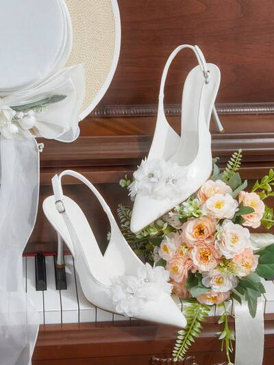 CUCCOO HITCHD White Elegant Floral Lace Pointed Toe High Heel Sandals, French Elegant + Mature Vibe, Lace Element Brings Soft And Delicate Feel, Suitable For Mature Women, Office Commuters, Matching Dates, Afternoon Tea, Business Casual Occasions Elegant Shoes Wedding Shoes